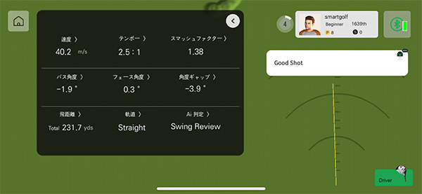 ※ドライビングレンジは、無風の平らな練習場でランが出やすい設定になっています。